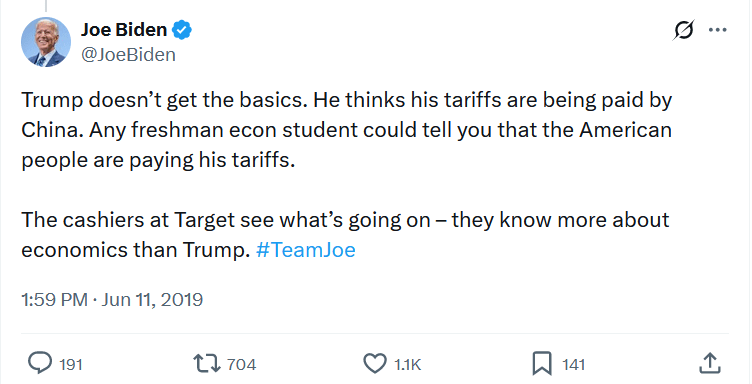 So again, don’t complain about giving Trump a *win*, reject the cognitive dissonance on tariffs and accept the one and only truth: tariffs are bad for growth, bad for prices, and bad for workers. Biden knew this in 2019, but I fear the cognitive decline hit him fast since he forgot it by 2021. (example, example, example)